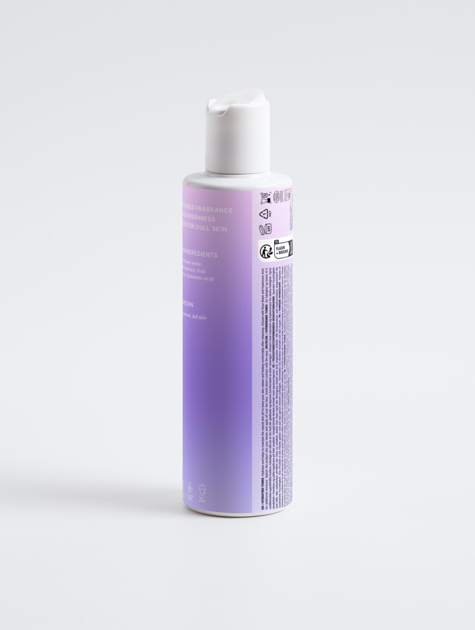 Ingredients: Aqua, Rosa Damascena (Rose) Flower Water ➀, Glycerin➁, Sodium PCA, Benzyl Alcohol, Chamomilla Recutita (Camomile) Flower Extract ➀, Fragaria Ananassa (Strawberry) Fruit Extract ➀, Sodium Benzoate, Potassium Sorbate, Sodium Hyaluronate, Lactic Acid, Citric Acid